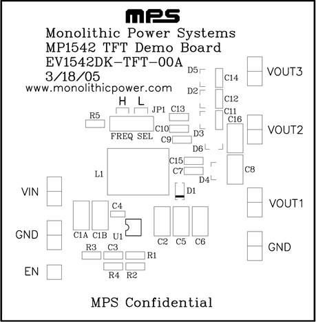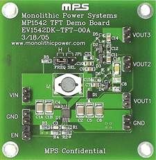 EV1542DK-TFT-00A 板用于评估采用MP1542实现的TFT应用。MP1542可在700KHz或1.3MHz频率下运行,易于滤波且噪声低。它通过一个外部补偿引脚为用户提供灵活的环路动态特性设计,允许使用小尺寸低ESR陶瓷输出电容器。通过一个外部电容来调节软启动功能,以降低浪涌电流。MP1542 输入电压低至2.5V,可在5V输入电压下,生成电流高达500mA 的12V输出电压。