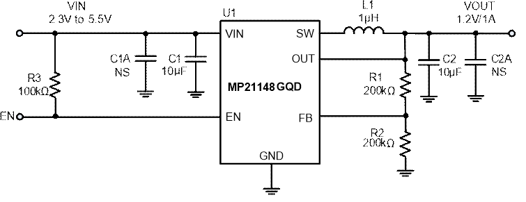 MP21148 采用超小型 QFN-6(1.0mmx1.5mm)封装,最大限度地减少了现有标准外部部件的使用。