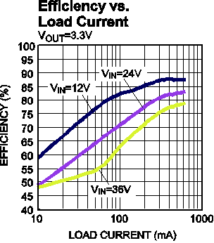3.3V 至 36V 的宽输入范围使其适用于汽车输入环境中的各种降压应用。3.5μA 的关断模式静态电流使其适合电池供电应用。该器件还具有高占空比和低压差模式,适合汽车冷车启动条件。
