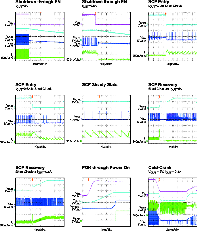 MPQ2454 可在轻载条件下降低开关频率,减少开关和栅极驱动器损耗,从而实现高转换效率。频率折叠功能可防止上电和短路时电感电流跑飞。