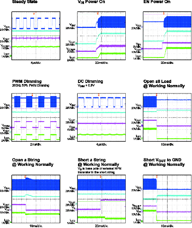 EV3393-F-00A为整装测试PCB。它在12V至30V输入电压范围内,为LED负载提供1.6A(200mA /串,8串)输出电流。其开关频率设置为160kHz。