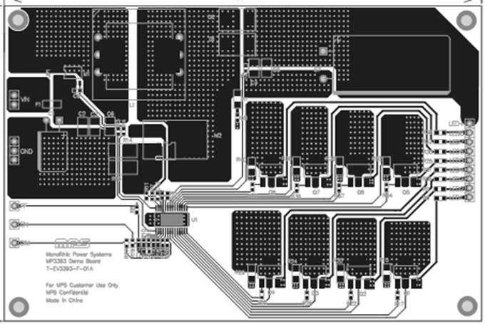 EV3393-F-00A是MP3393的评估板,MP3393是一款具有8通道外部晶体管电流源的升压控制器。