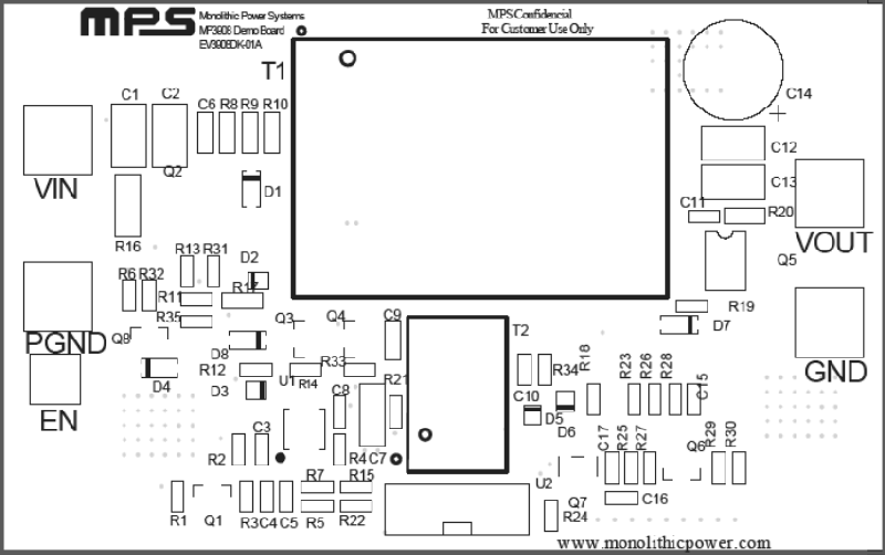 EV3908DK-01A 是 MP3908DK 的评估板。它可在36V至72V的输入范围内提供稳定的5V输出电压和高达5A的负载电流。通过更改评估板上的反馈电阻可以调节输出。