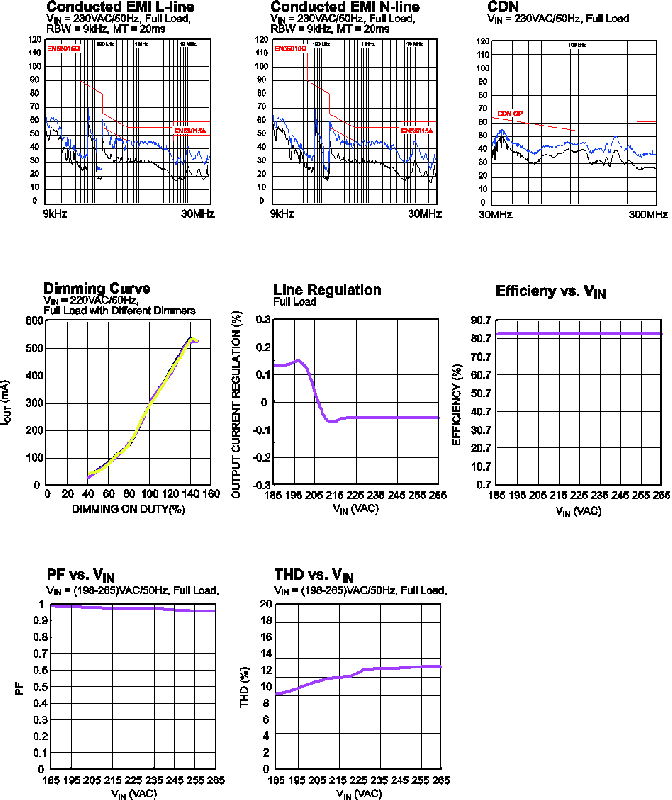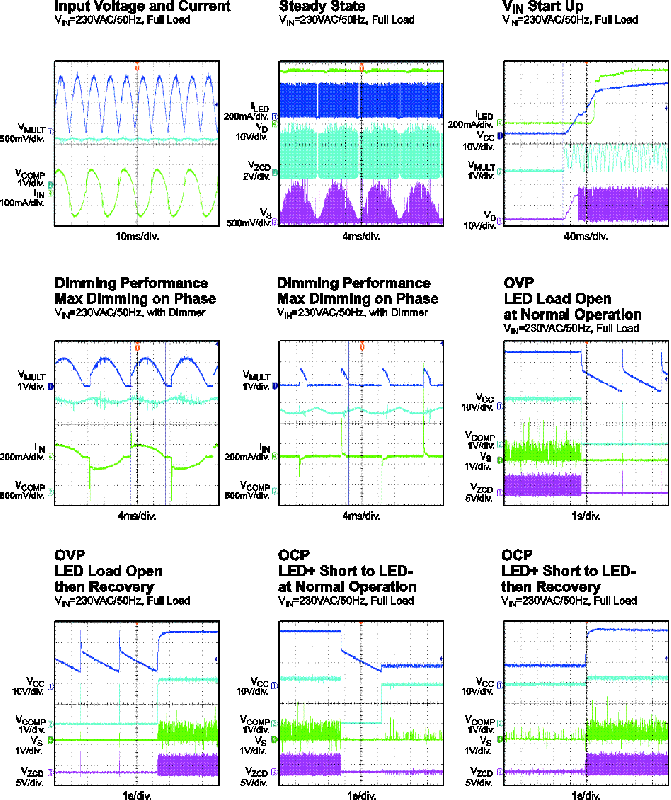 - 在185VAC 至 265VAC 输入范围内,可实现大于0.9的高功率因数