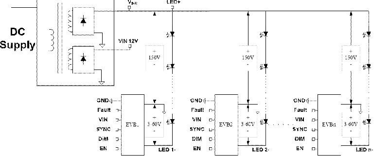 EV4601ES-00A具有12V输入VIN和高压源VINH,可提供稳定的电压(VINH至VINH + 60V),驱动超过350V的LED灯串。LED电流可调节至约120mA。EV4601ES-00A提供同步功能。可将几个EV4601ES-00A一起使用以驱动电视面板。