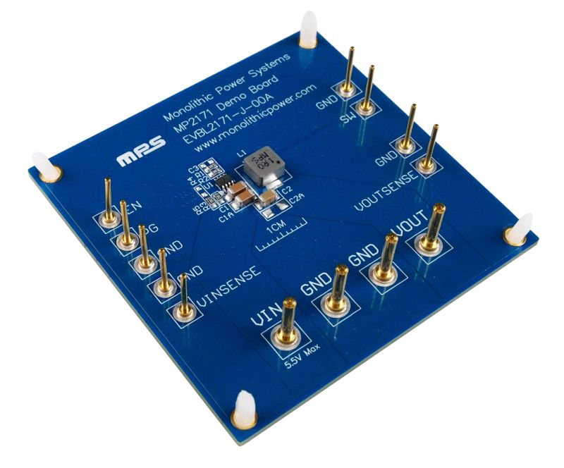 EVBL2171-J-00A 是用于展示MP2171 和 MPQ2171 性能的评估板。它具有集成的 MPS 功率电感器。