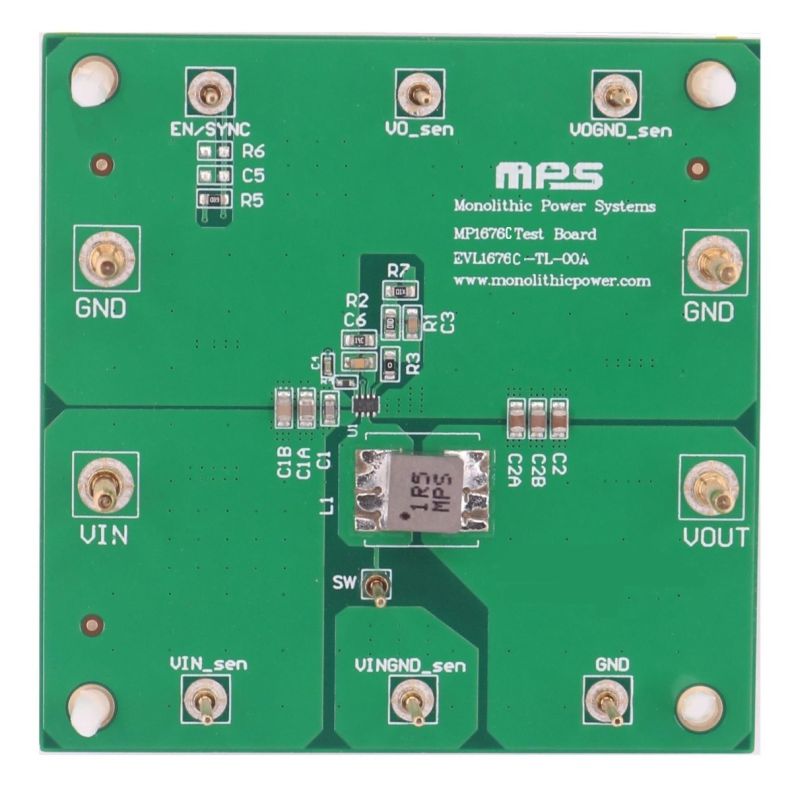 The EVL1676C-TL-00A evaluation board is designed to demonstrate the capabilities of the MP1676C, a synchronous, rectified, step-down switch-mode converter with built-in internal power MOSFETs.