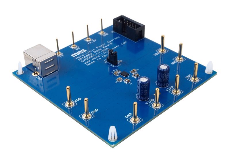 The EVQ5862-LT-00A evaluation board is designed to demonstrate the capabilities of the MPQ5862-AEC1, a dual-channel, high-side (HS) power switch for a nominal 1.5A load per channel. The device covers a 5V to 16V input voltage (VINx, where x = A or B) range. The MPQ5862-AEC1 supports both a default internal current limit (2.4A) and a configurable, high-accuracy current limit via the I2C. This helps clamp the inrush current under short-circuit conditions, which improves system reliability. A selectable start-up slew rate also helps reduce the inrush current during start-up. In addition, fast-off functionality can quickly shut down the device if the channel current increases sharply.