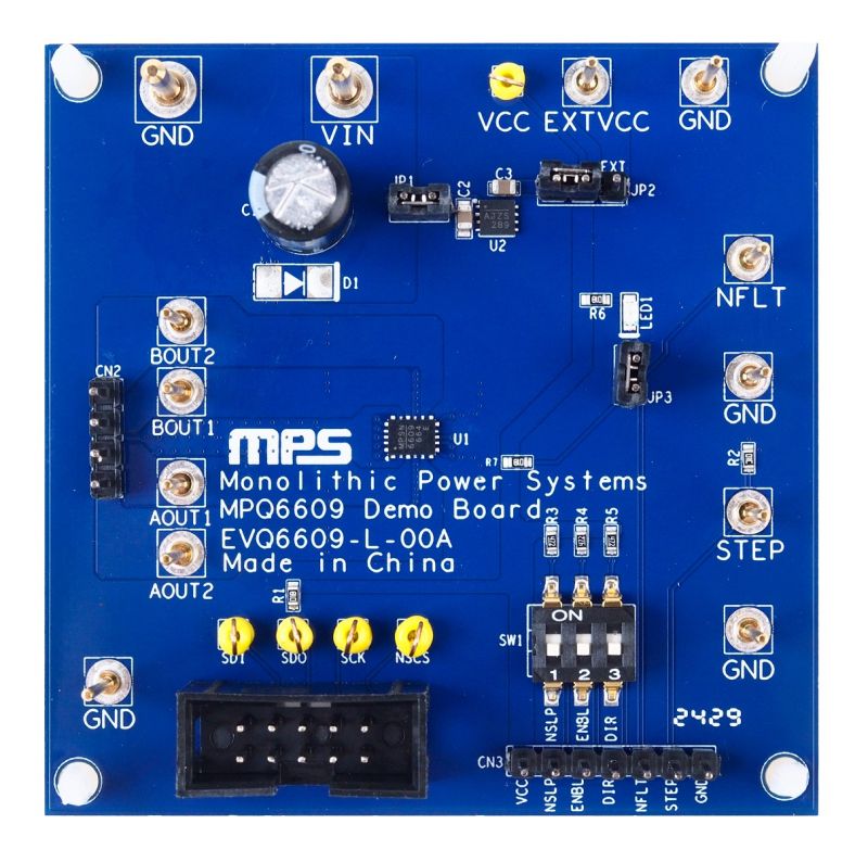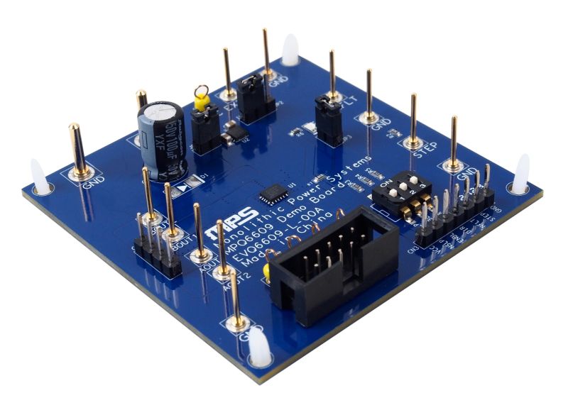 The EVQ6609-L-00A is an evaluation board designed to demonstrate the capabilities of the MPQ6609-AEC1, a stepper motor driver with a built-in indexer and internal current regulation. It is suitable for headlight position adjustment, electronic expansion valve (EXV) and electrical control valve (ECV) stepper motors, heads-up display (HUD), and HVAC stepper motors.