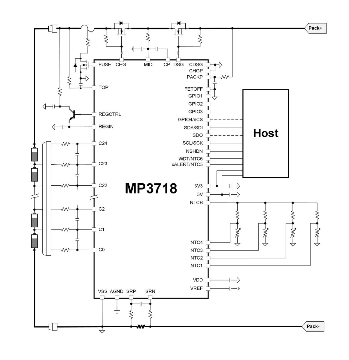 为了满足客户需求,MPS还推出了基于MP3718的24s电摩参考设计。该设计为典型的低边应用,搭载MP2645主动均衡芯片,支持蓝牙无线通讯,并搭配MPS混合模型24s电量计MPF4279x,LFP电池在全温度范围内的多种应用场景下SOC精度为5%,三元锂电池SOC精度为3%。
