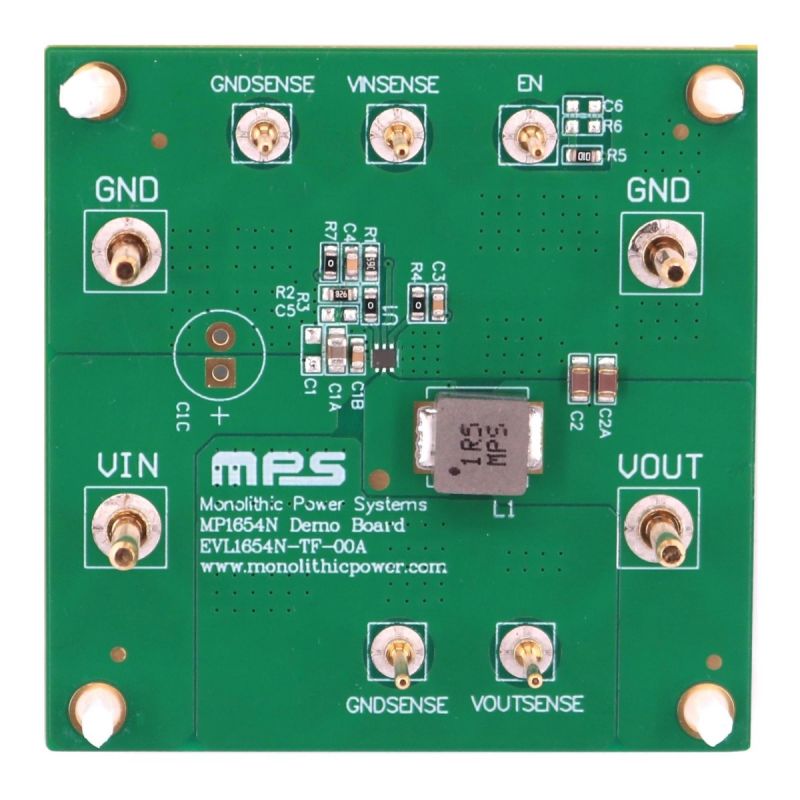 The EVL1654N-TF-00A evaluation board is designed to demonstrate the capabilities of the MP1654N, a synchronous, rectified, step-down switch-mode converter with built-in, internal power MOSFETs.