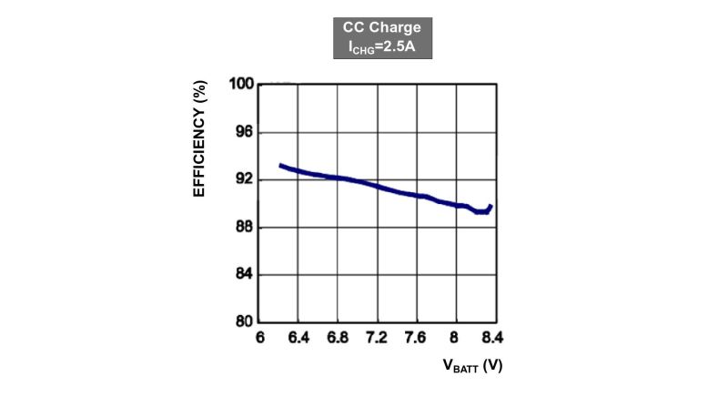 当接入输入电源时,演示板为 2 节串联电池充电,充电电流达到 2.5A。