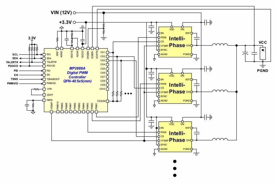 MP2888A产品支持PMBus和PWM-VID接口的数字多相PWM控制器