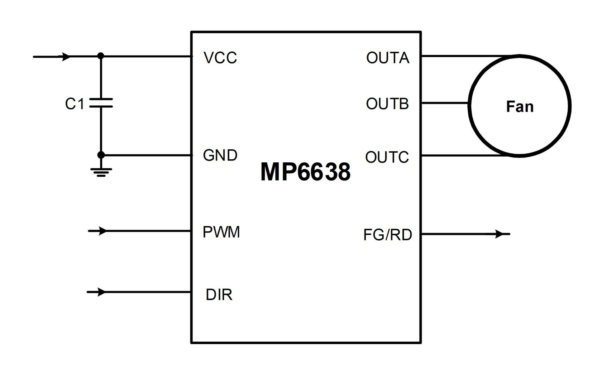 MP6655产品集成 MOSFET 和霍尔传感器的 18V、2.5A 单相 BLDC 风扇驱动器