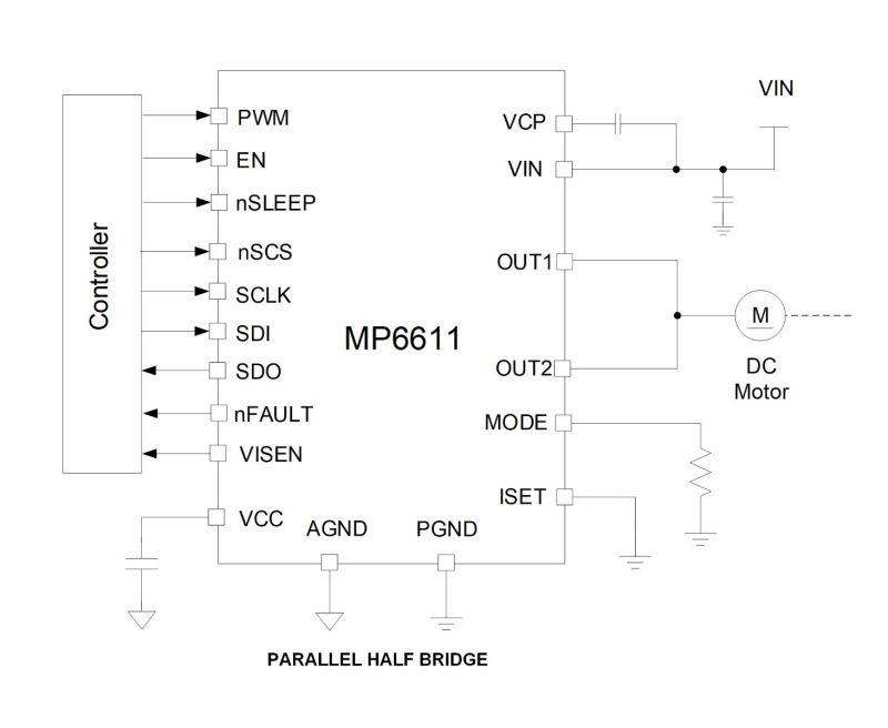 MPQ6611-AEC1 支持2.7V 至 32V的电机电源电压,可提供高达 7A 的输出电流 (IOUT)。当器件被禁用时,具有超低待机电路电流。