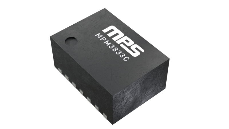 MPM3833C 是一款内置功率 MOSFET 和电感的单片降压模块转换器。DC-DC 模块采用小体积、表面贴装的 QFN-18(2.5mm×3.5mm ×1.6mm) 封装。MPM3822C 能在 2.7V 至 6V 输入电压范围内实现 3A 的连续输出电流,具有极好的负载和线性调节能力。MPM3833C 采用强制连续电流模式,具有一个电压纹波小于 10mV 的输出电容,是光模块、FGPA、ASIC 和其他低纹波噪音应用的理想之选。输出电压可调节低至 0.6V。仅需完成反馈(FB)电阻、输入电容和输出电容的参数设计。