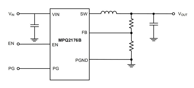 The MPQ2176B-AEC1 is a monolithic, step-down switch-mode converter with built-in internal power MOSFETs. The device provides 4A to 6A of continuous output current (IOUT) from a 2.4V to 5.5V input voltage (VIN) range, with excellent load and line regulation. The output voltage (VOUT) can be regulated to as low as 0.4V.