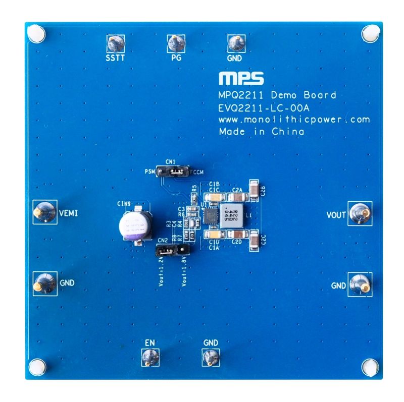 The EVQ2211-LC-00A evaluation board is designed to demonstrate the capabilities of the MPQ2211-AEC1, a high-frequency (2.2MHz), synchronous buck converter with integrated, internal high-side and low-side power MOSFETs (HS-FETs and LS-FETs, respectively).