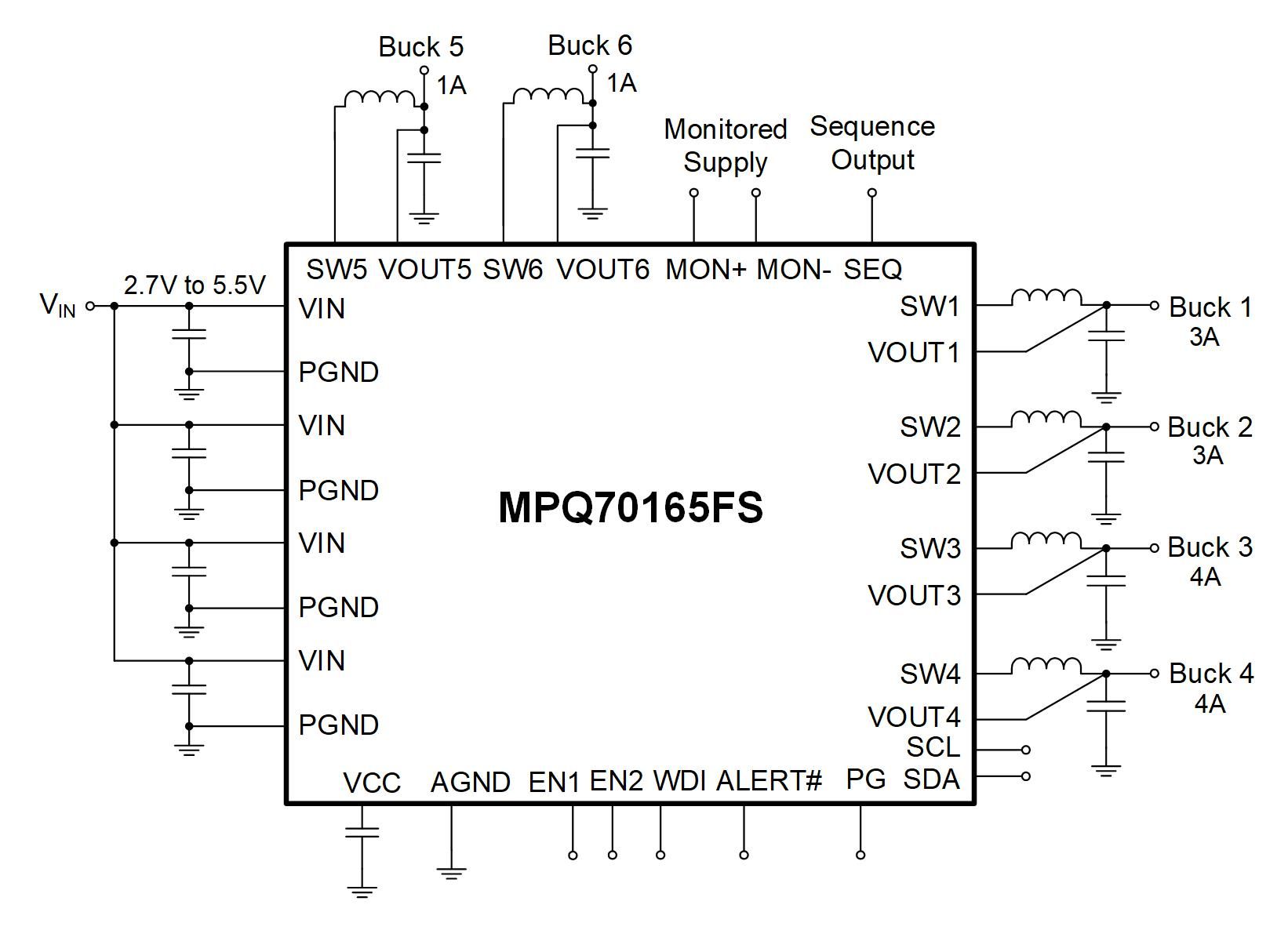 MPQ70331FS-AEC1 采用 TQFN-34 (6mmx6mm) 封装,并符合 AEC-Q100 认证。