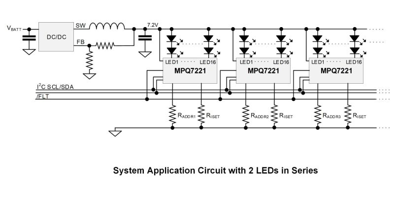 MPQ7225A-AEC1产品具有自适应反馈控制 (AFC) 并增强安全性的 16 通道灌电流 LED 驱动器,符合 AEC-Q100 认证