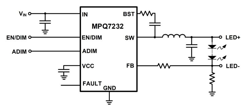 MPQ7232-AEC1只需极少数量的现有标准外部元器件。它采用节省空间的QFN-15 ( 3mmx4mm ) 封装,并符合 AEC-Q100认证。