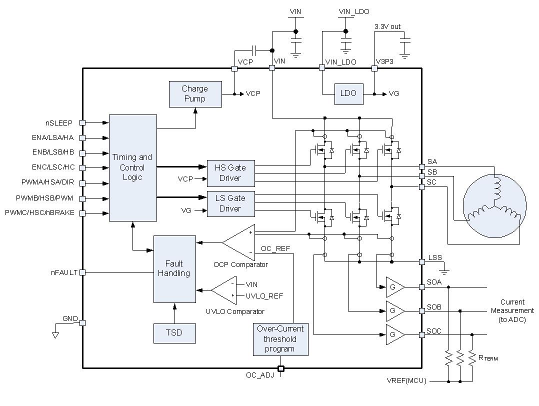 过流保护(OCP) | 实时监测相电流,阈值可调 | 防止电机堵转烧毁 |