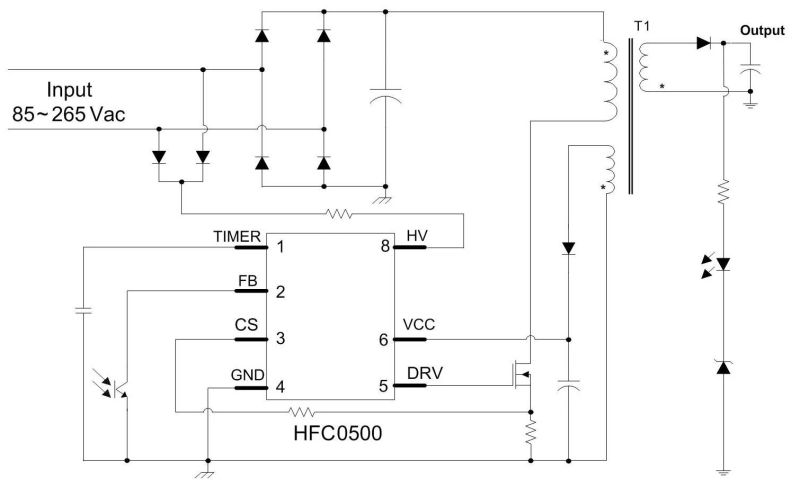 HFC0512产品具有超低空载功耗的固定频率反激控制器