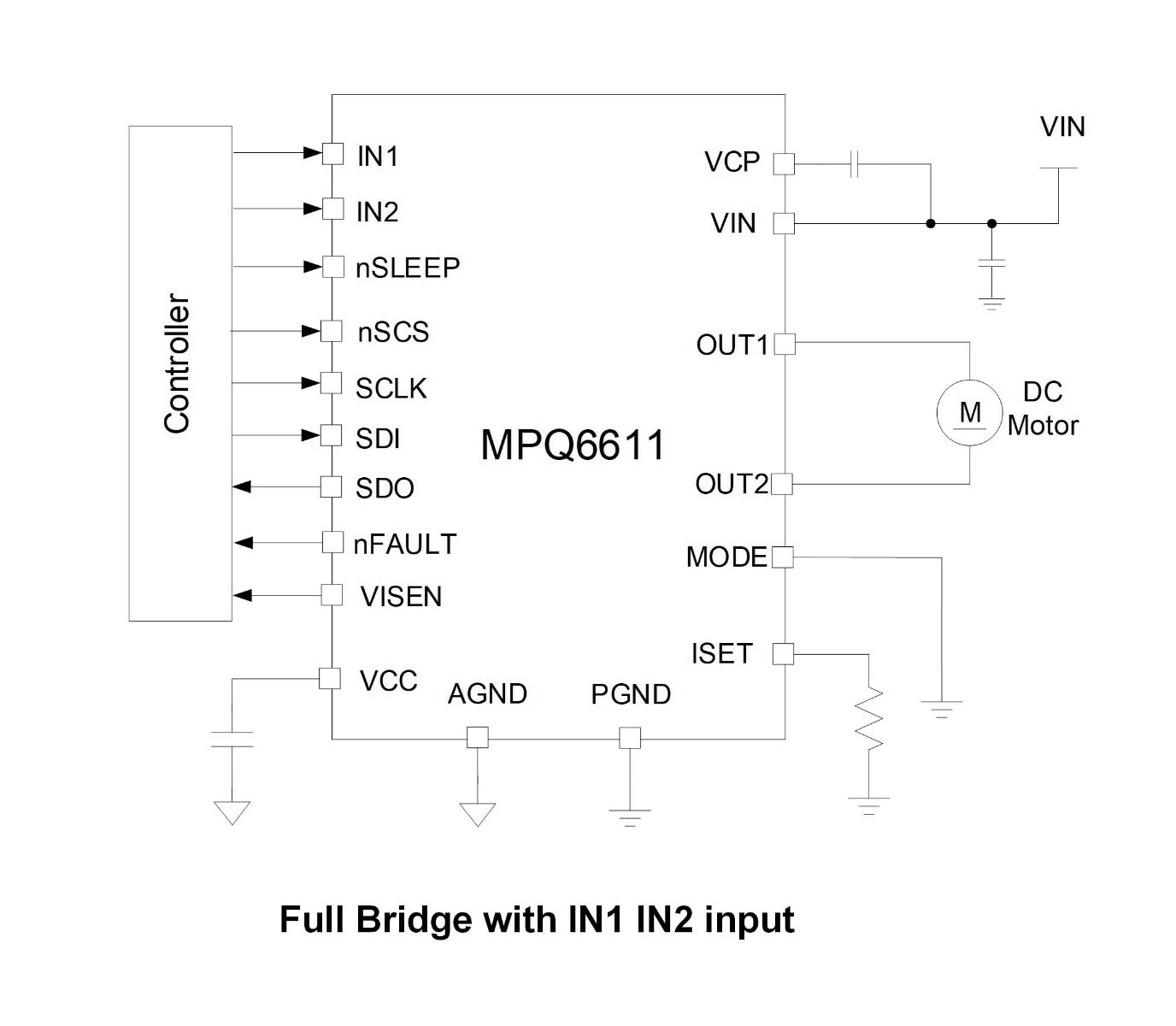 MP6614的内部保护功能包括过流保护(OCP)、短路保护(SCP)、欠压锁定(UVLO)保护和过温保护(OTP)。输入控制信号通过板上的连接器生成。
