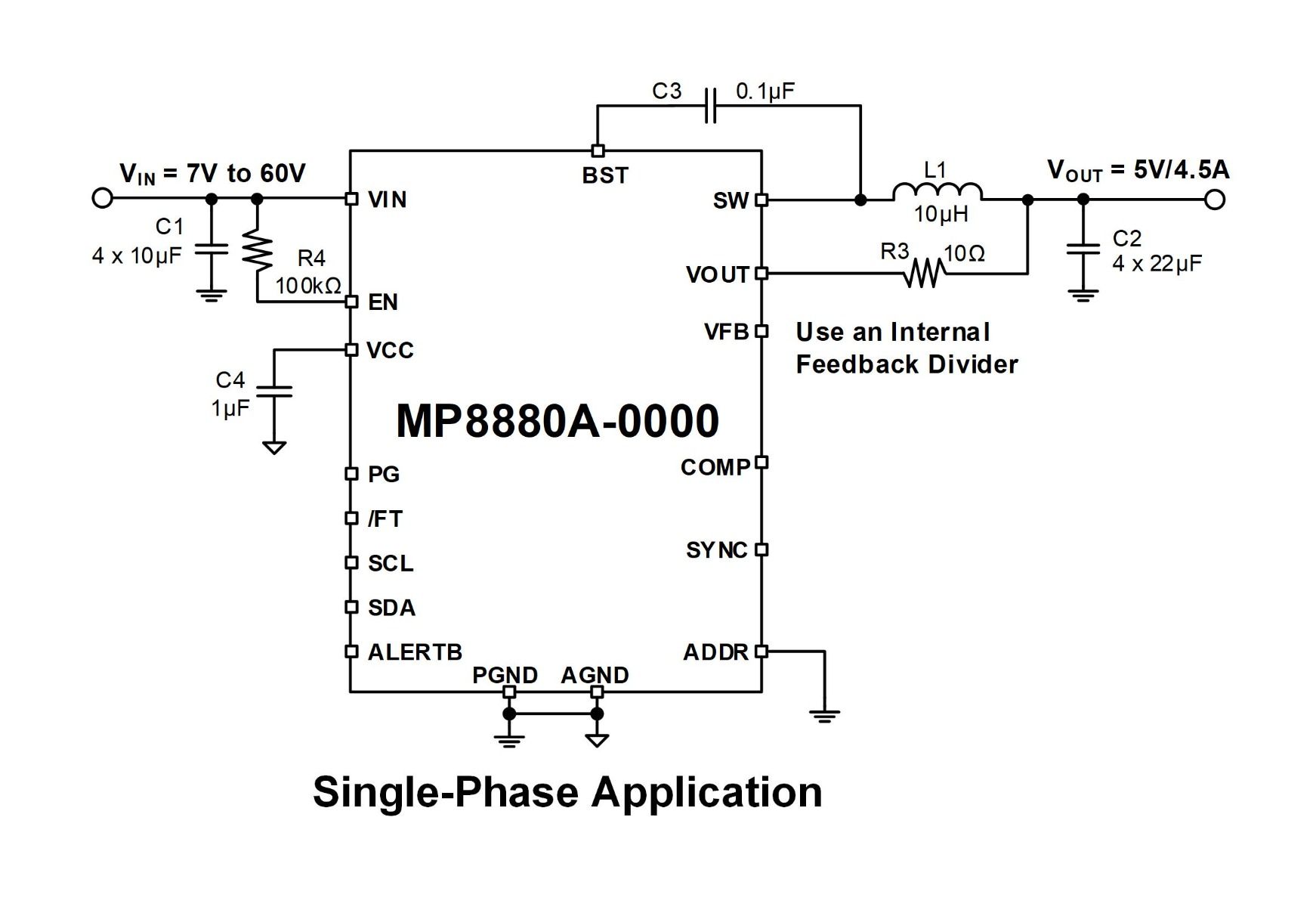该评估板采用紧凑型布局。由于频率固定在480kHz,可使用数值较小的电感和输入/输出电容器来降低成本,节省电路板空间。