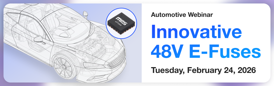 Join us to learn how MPS’s integrated 48V e-fuse solutions offer intelligent, integrated protection to enhance automotive safety, allowing manufacturers to design smarter and more efficient designs.