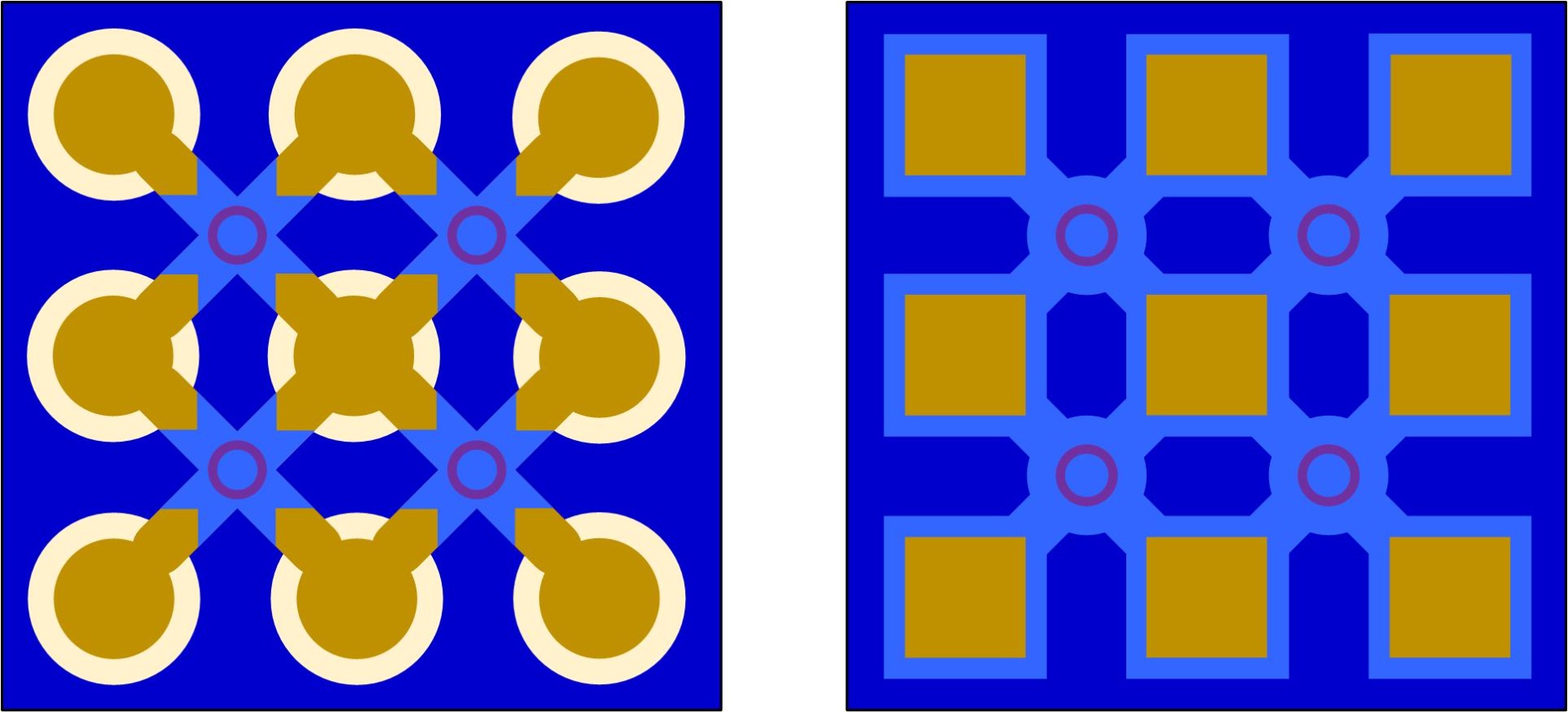 - Splitting larger pads into 0.5mmx0.5mm pads to facilitate outgassing.