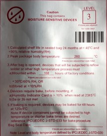 | MSL Level | Dry Before Bag | MBB with HIC | Desiccant | MSID Label | Caution Label |
